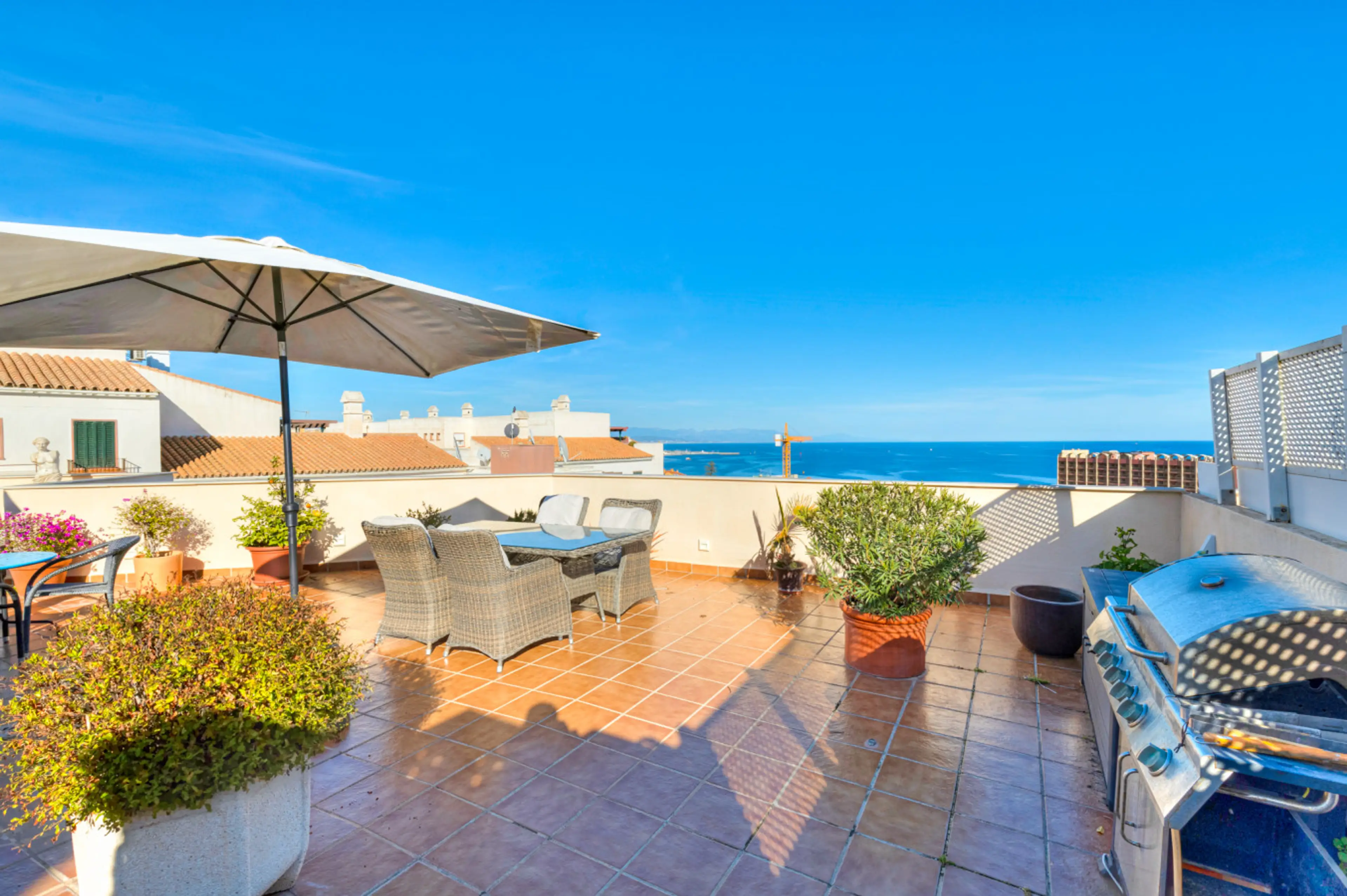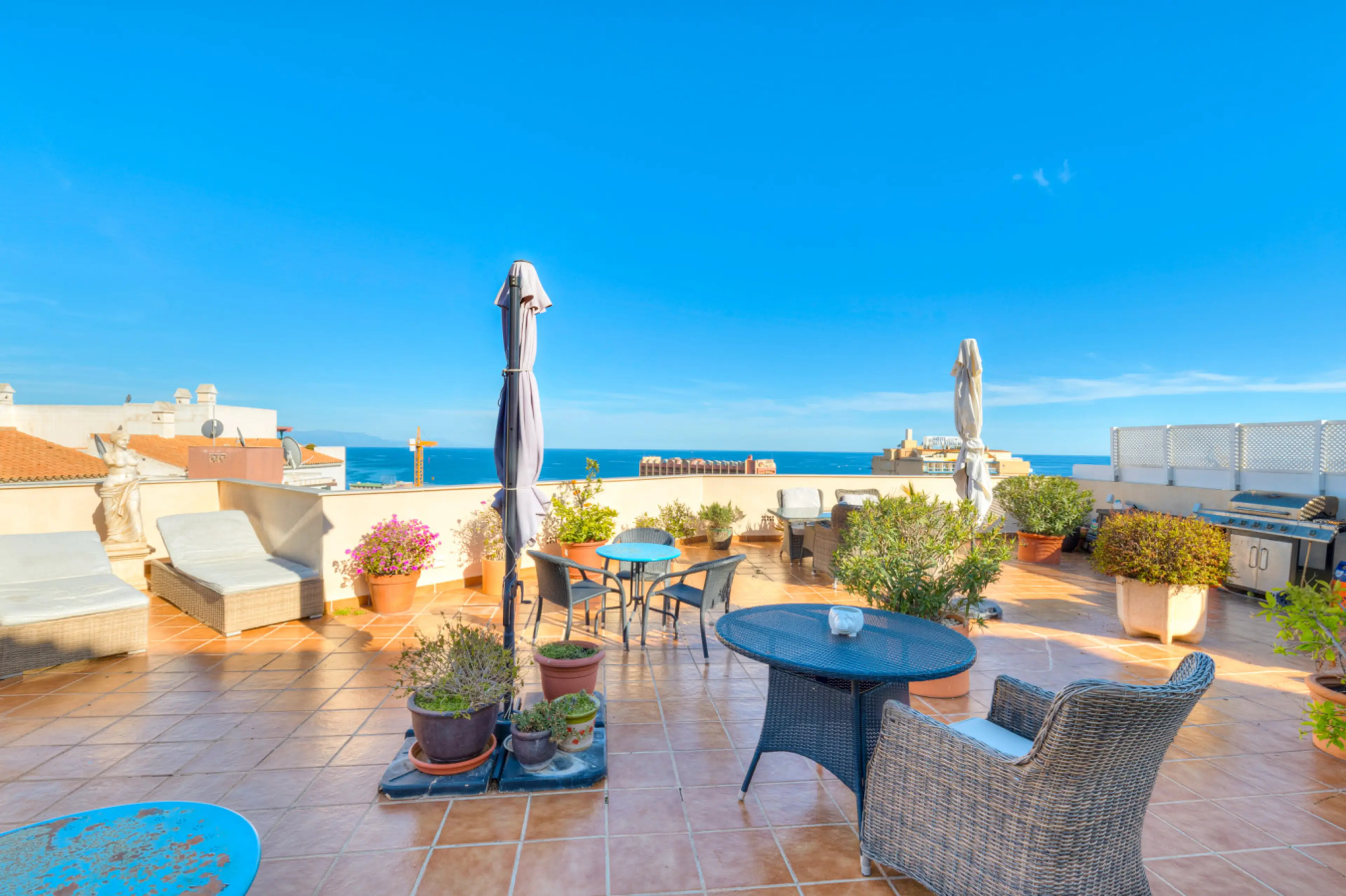 A stunning 2-bedroom penthouse with breathtaking sea views. The huge roof terrace is magnificent. There is a private jacuzzi and sauna, barbecue with gas, dining area, and sun beds for relaxing. On the terrace you can spend time enjoying the sun or having a barbecue with your family. The apartment...